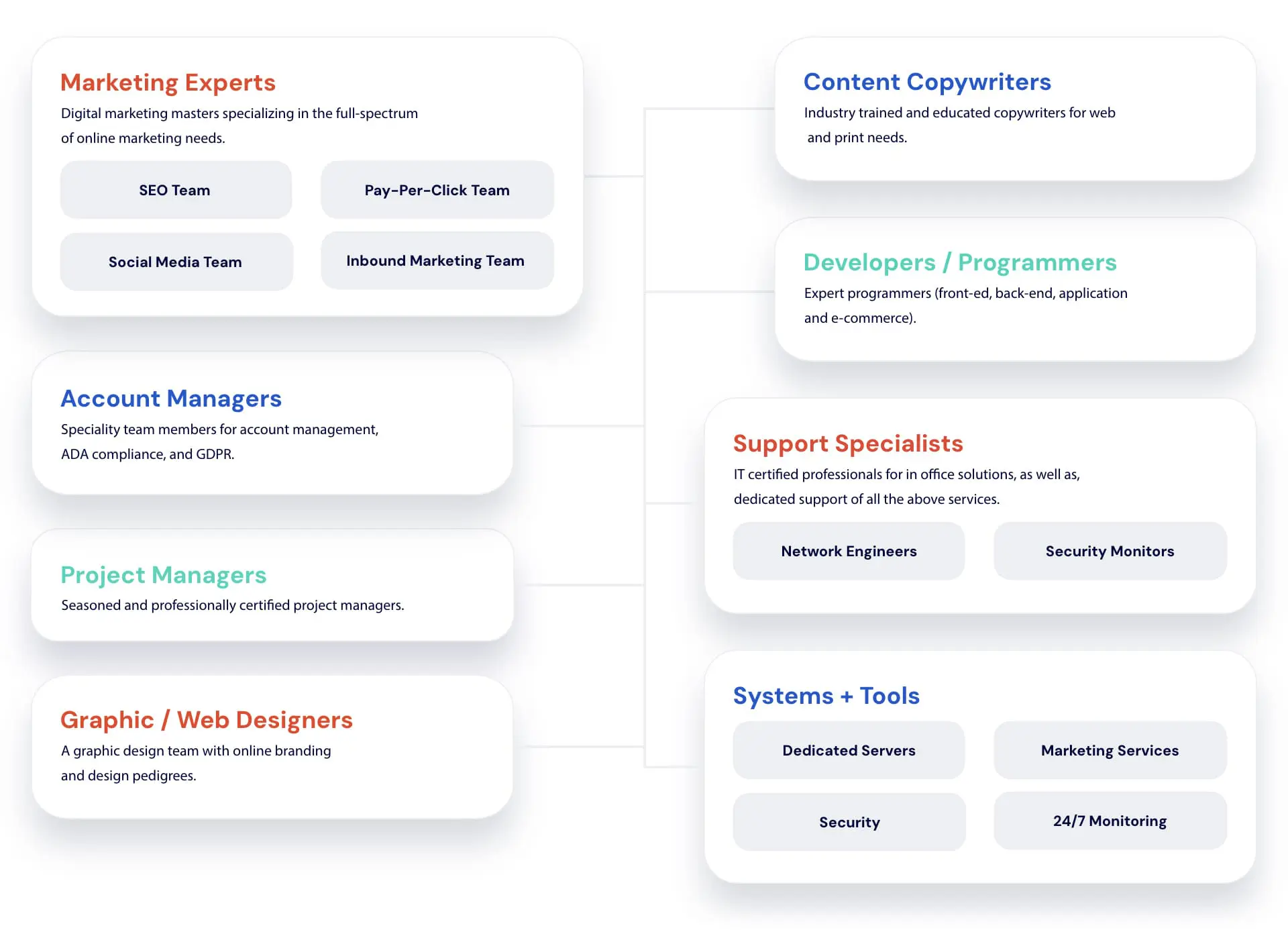 - And, supports all services with a dedicated team of support specialists, “in-house”.